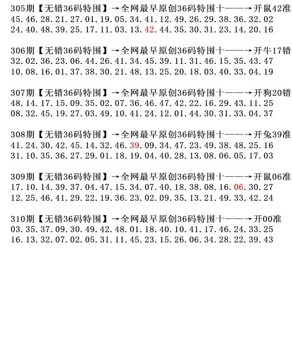 305期:绝杀三肖【牛兔鸡】开:鼠42准